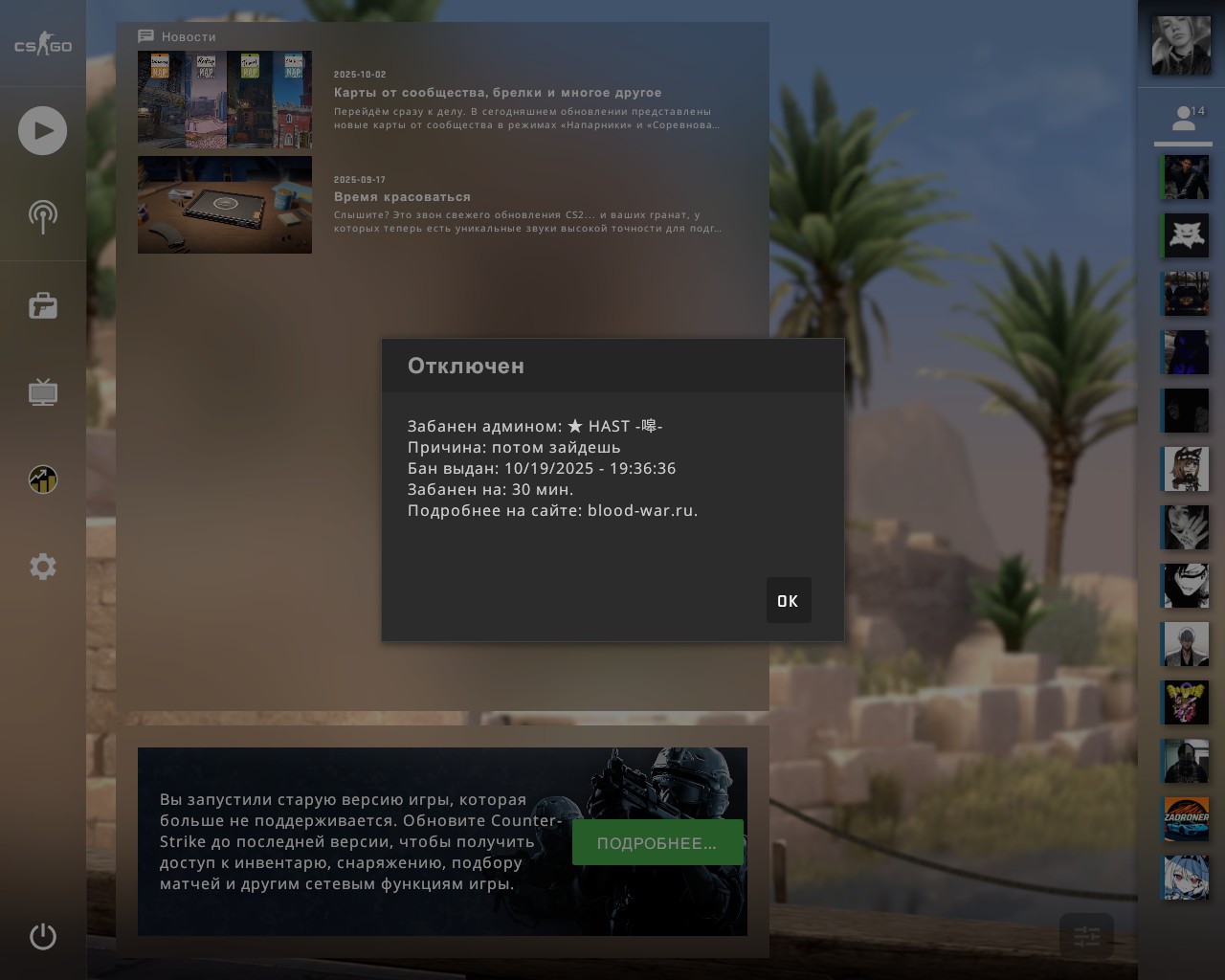Я зашел сервер, просто спокойно играл и убил всего лишь два раза игрока HAST, вскоре меня кикакет с сервера и вижу что он меня забанил на 30 минут по причине "позже зайдешь"